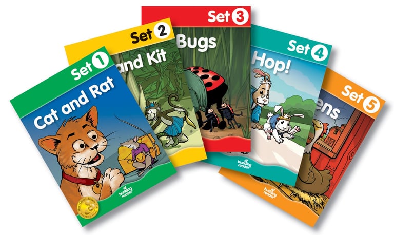 Previewing a book dramatically improves reading comprehension, so the first book in each set is a wordless picture book that introduces the story through colorful illustrations.